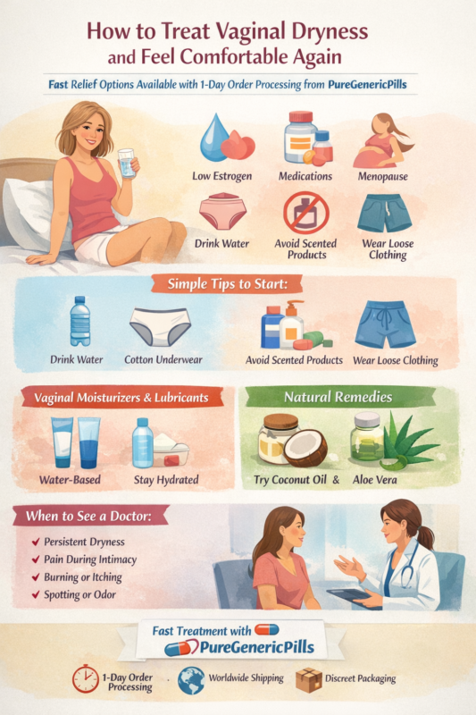 This guide will walk you through simple home care, natural remedies, and doctor-approved treatments, plus how you can get fast medical solutions through PureGenericPills with 1-day order processing.