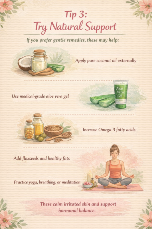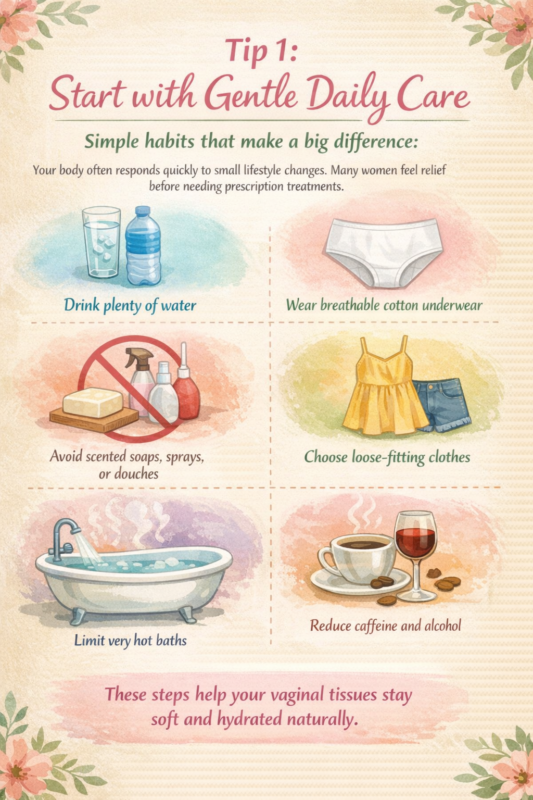 Vaginal dryness is treatable — and in most cases, relief can start with small, gentle steps.